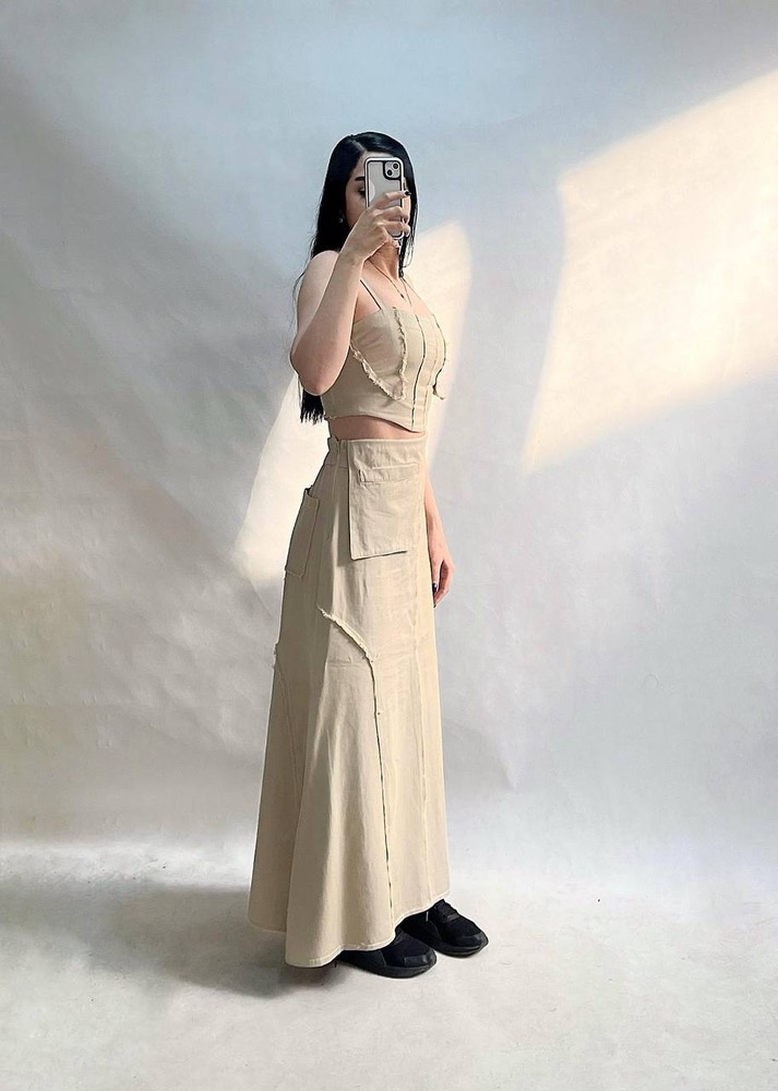عرض کمر دامن در حالت عادی:32سانت و در حالت کشسانی 42سانت /پشت دامن کش کار شده است